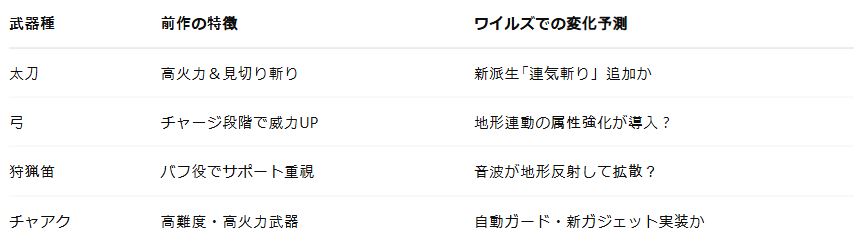 🔵 ワイルズの世界観(広大な自然、遺跡、古代技術)にマッチした武器の登場は十分にあり得る!